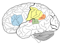 linguagem, como demonstra a imagem acima, são: Área de Broca (Azul), Área de Wernicke (Verde), Giro
